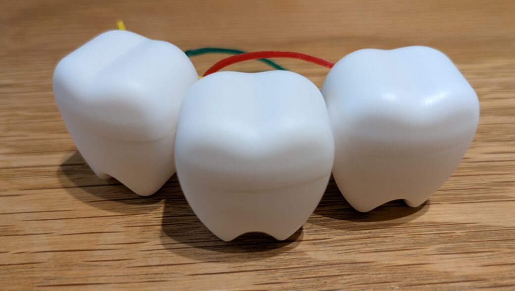 こやま歯科では、乳歯の抜歯をされたお子様に、その抜けた乳歯をかわいい歯の形の乳歯ケースに入れてお渡ししています。