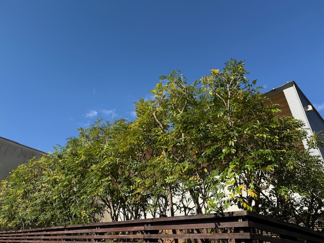休診日の昨日、こやま歯科医院を囲む生い茂った樹々を業者さんがほぼ1日かけて剪定してくださいました。