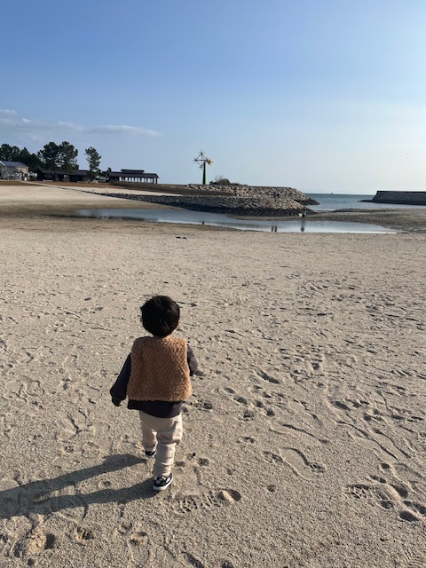 12月の寒い中ですが、砂浜を見つけると一直線に走っていき楽しそうに水辺で遊んでいた2歳の息子でした😂